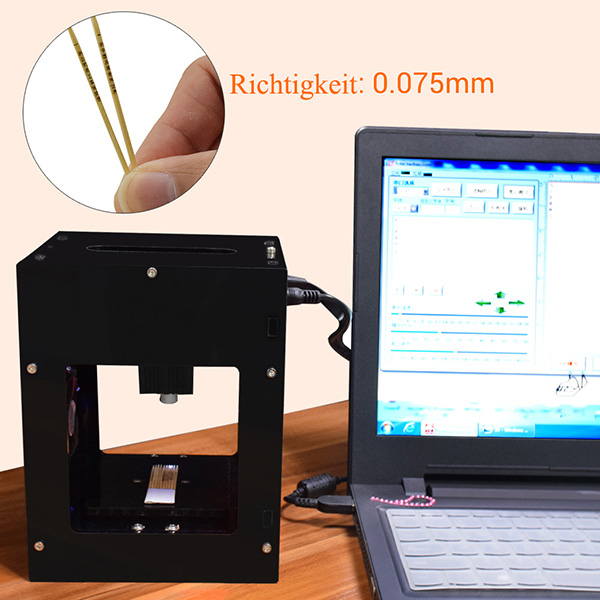 Die neueste 1500mw Lasergravurmaschine, Hat eine starke Ausgangsleistung, Engraving faster. Verwenden Sie die neueste Software, einfach zu bedienen. Software kann die Leistungsgröße anpassen, Carving Geschwindigkeit, Schwarz-Weiß-Verhältnis. Kann Textgravur eingeben, schalten Sie die Computerbildgravur ein.